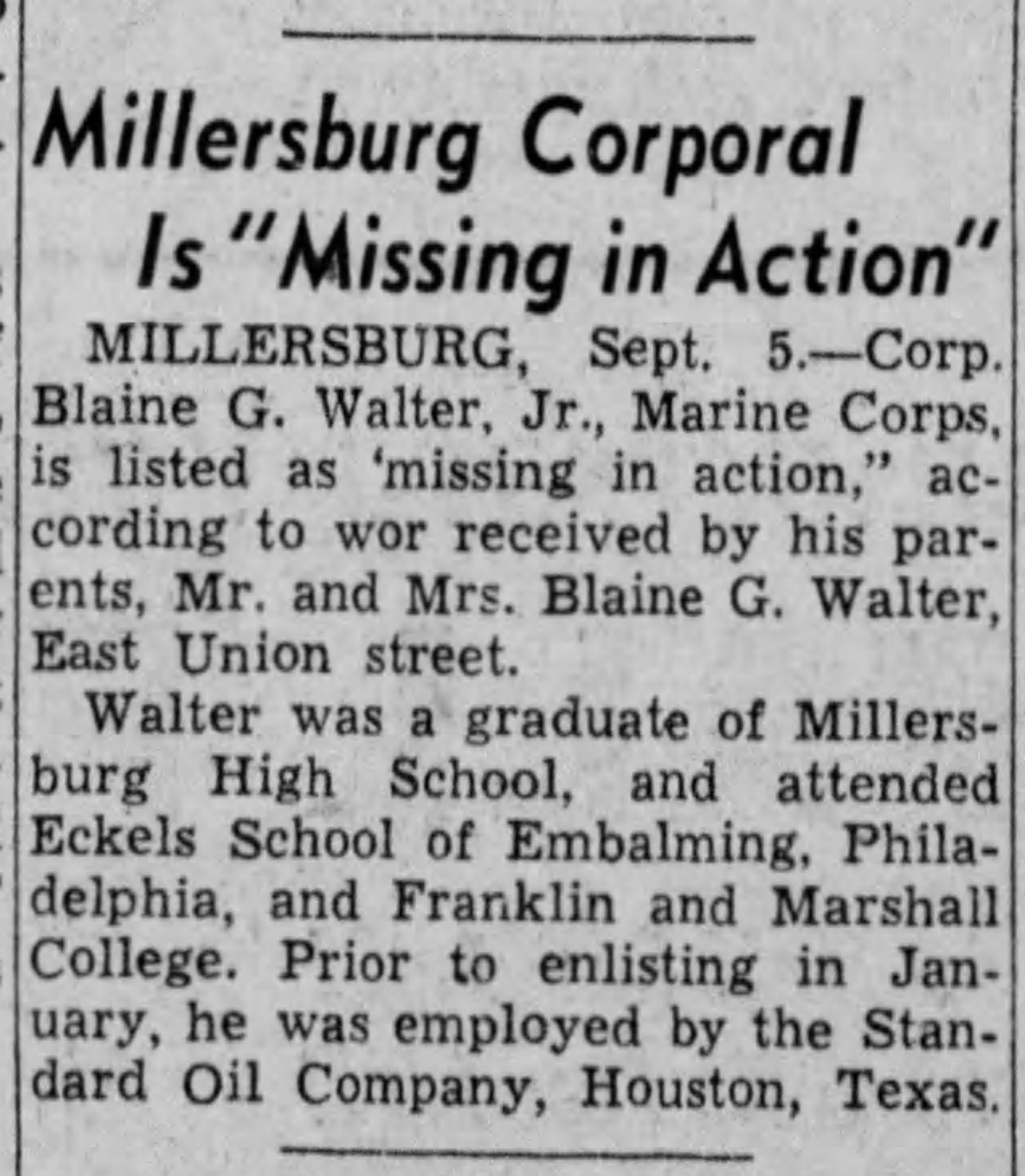 PFC Walter was reported as missing in action when the patrol failed to return to safety. Officially, nothing more was ever learned of Goettge’s men, and all were eventually declared dead as of 14 August 1943.