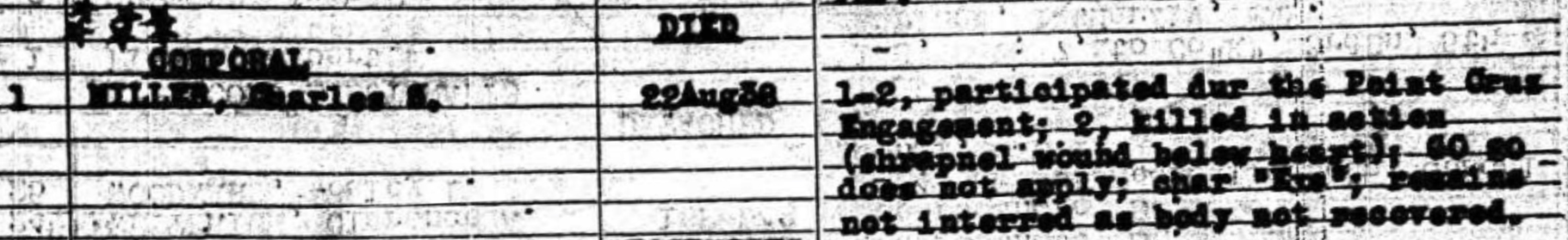 Miller was killed in action near Point Cruz, Guadalcanal.