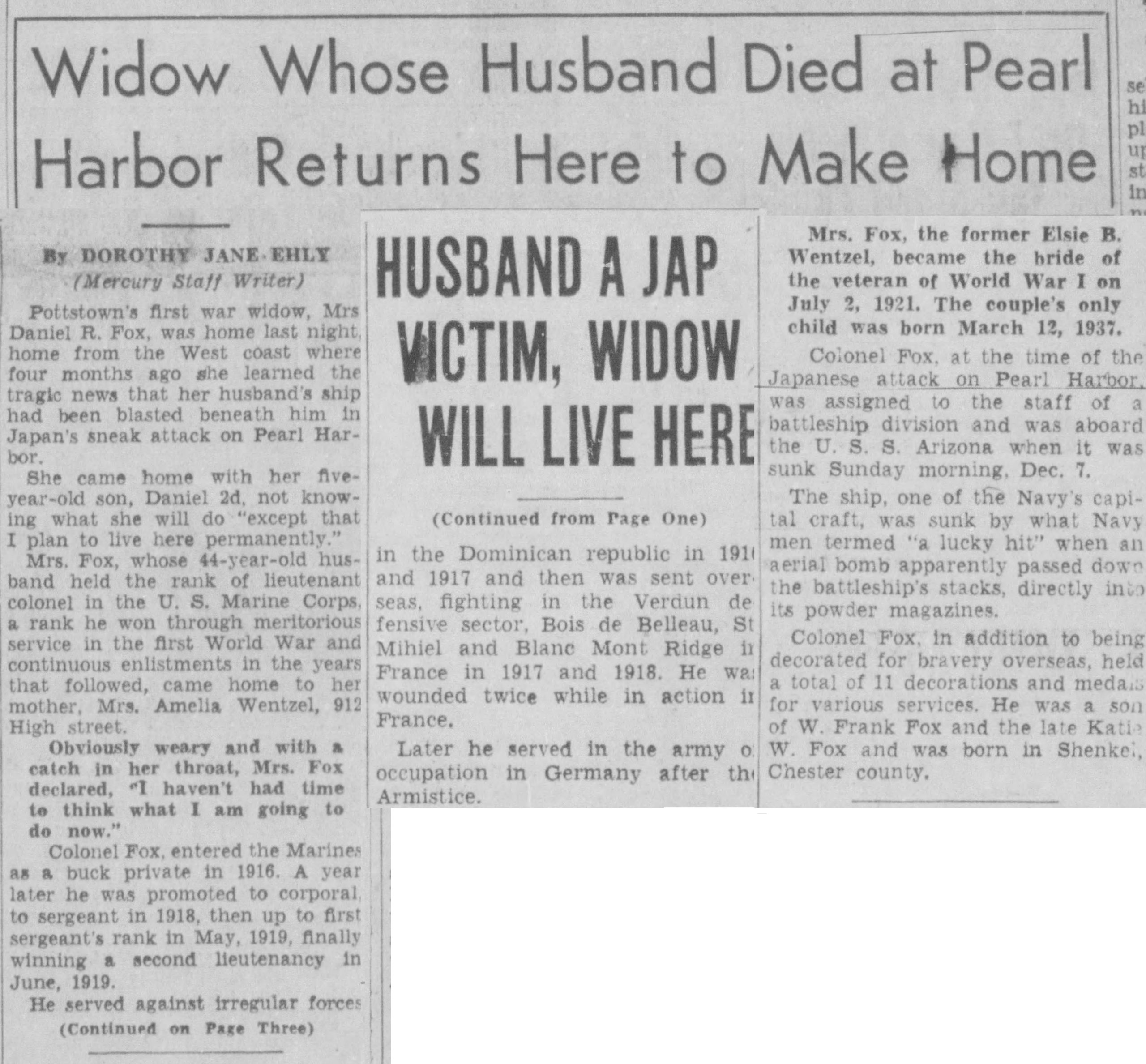 Elsie Bowman Wentzel Fox passed away in 1978. She is interred at Highland Memorial Park in Pottstown, PA.
