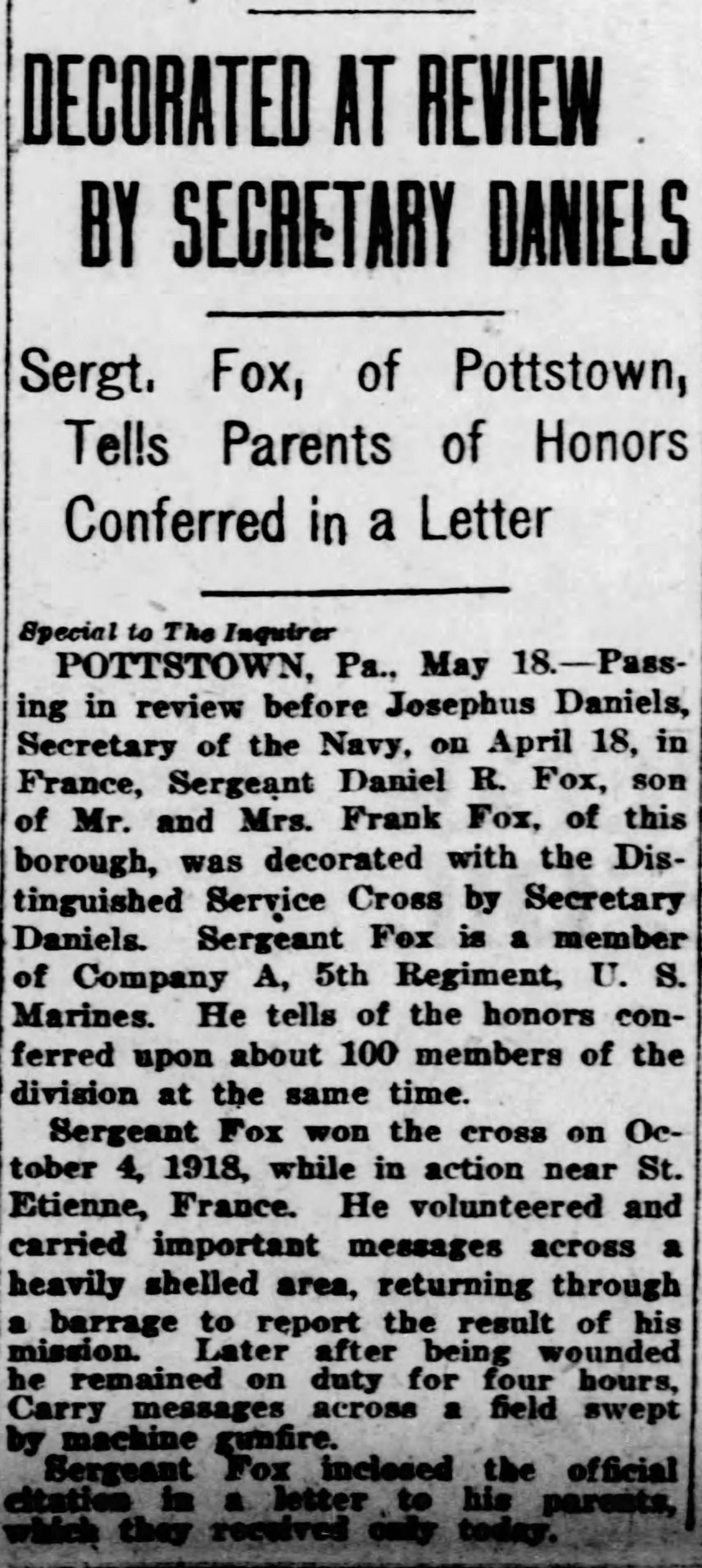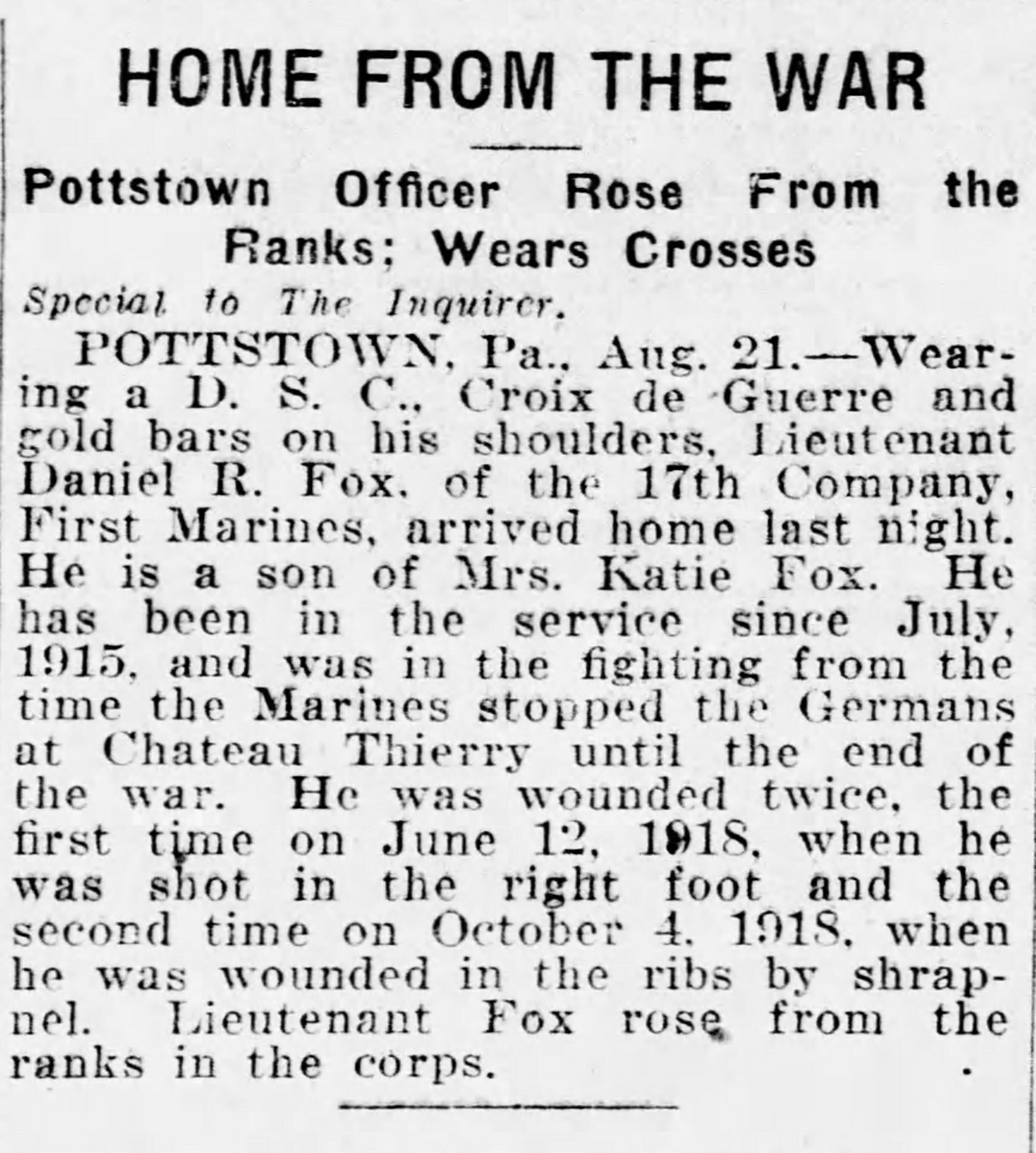 Lieutenant Colonel Daniel R. Fox was my GreatUncle. Family called him Russel. He was one of 13 children born to William F. & Kathrine Fox.