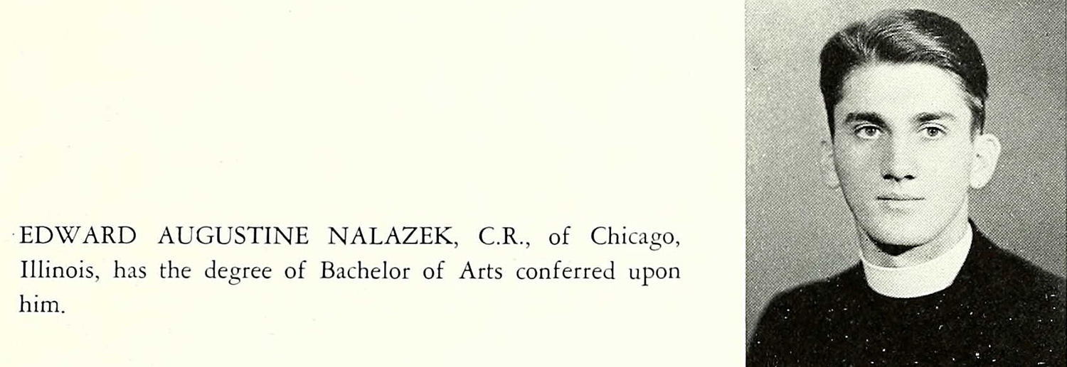 “Eddie” developed into a fine student; after completing high school, he enrolled at Missouri’s Saint Louis University and graduated cum laude in 1938. With a bachelor degree in hand, he decided to study for the priesthood and moved to Prince George’s, Maryland to enter a seminary. In 1941, however, he voluntarily left his training and was absolved of his vows. The reasons why are no longer known; his family hypothesizes that the priesthood “just wasn’t for him.”