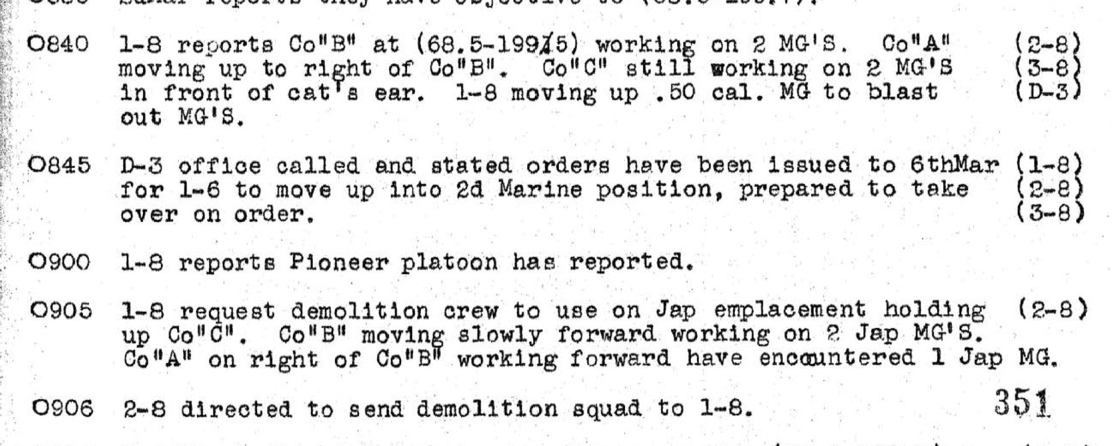PFC Eugene Wade and Private Joseph J. Diamond, both of D/1/8th Marines, were killed in action at approximately 0900 hours. The exact circumstances of their deaths aren’t known; it is likely they were heavy machine gunners attached to one of the assault companies.