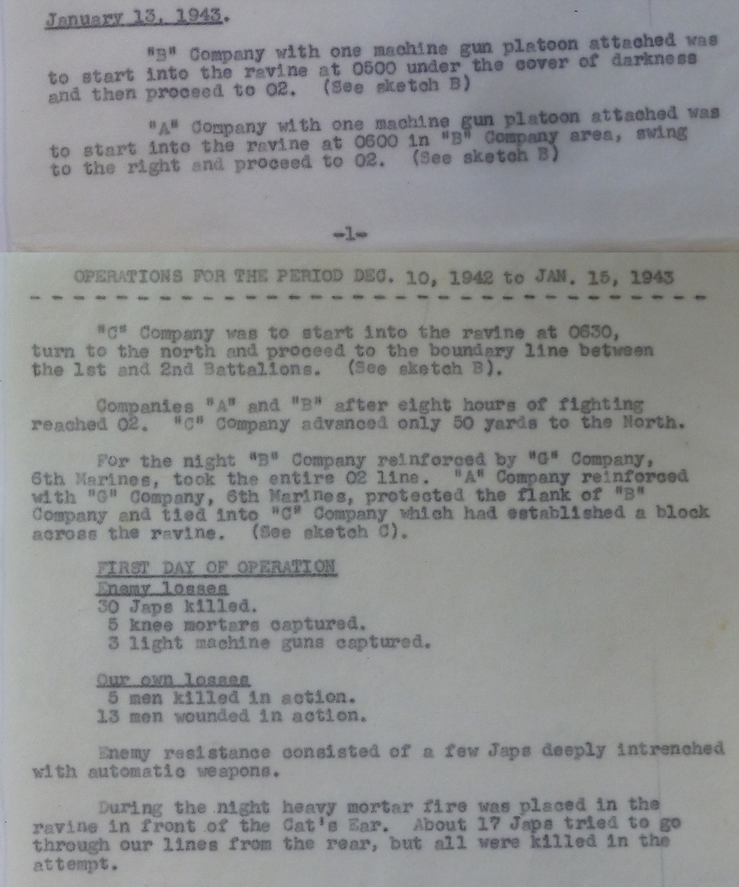 In the first weeks of 1943, American troops began preparations for what they hoped would be the last drive against Japanese forces on Guadalcanal. The 25th Infantry Division kicked off a major offensive on 10 January, with the 8th Marines scheduled to join in three days later.