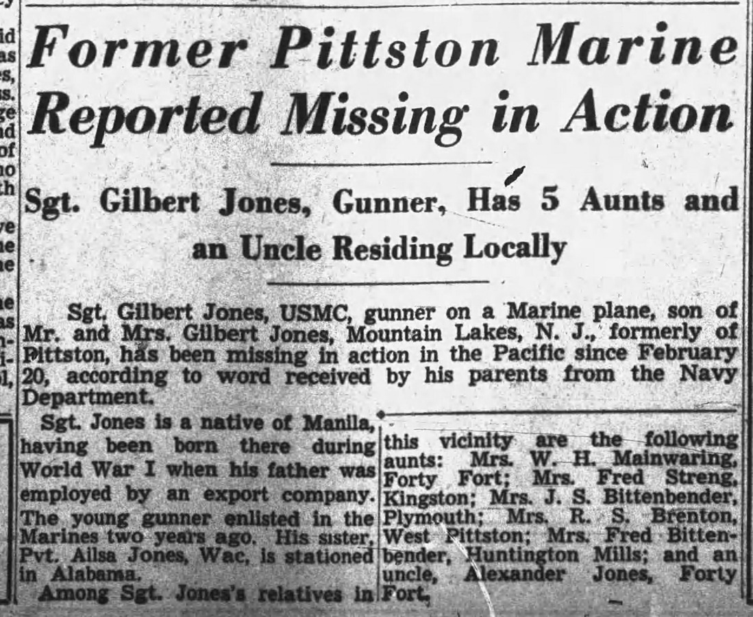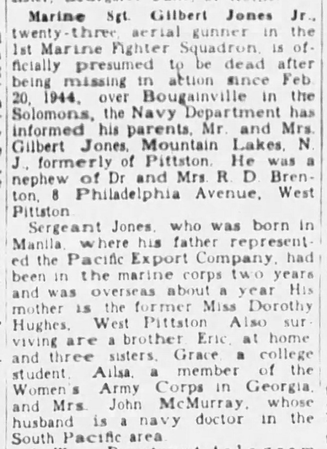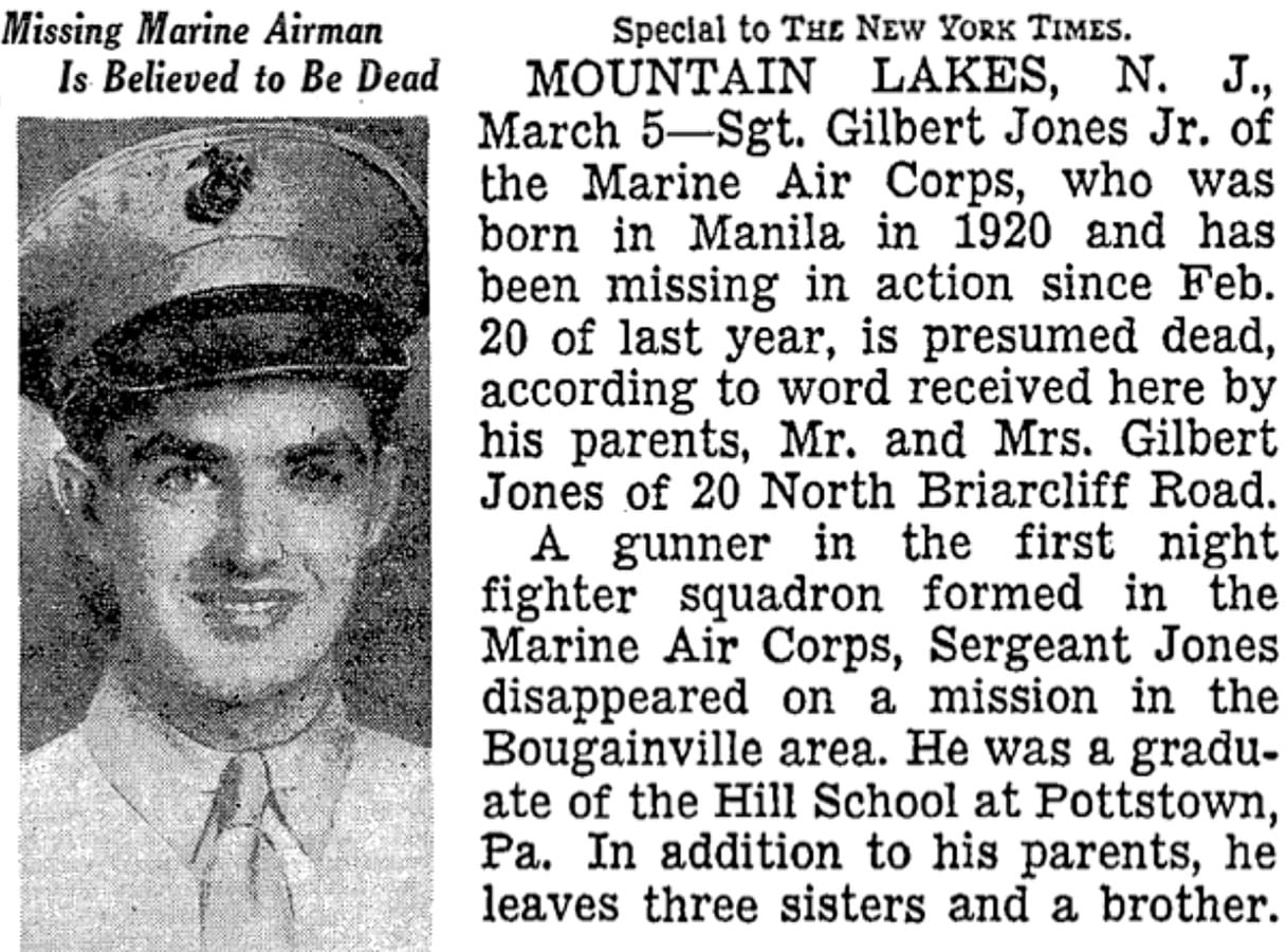 Sergeant Gilbert Jones was a Marine aviator who flew with VMF(N)-531.