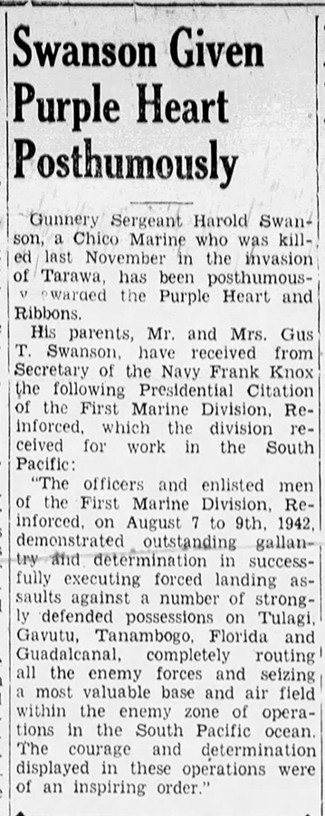 Gunny Swanson was one of hundreds of Marines to lose his life on the first day of the battle. No details of his final moments are known.