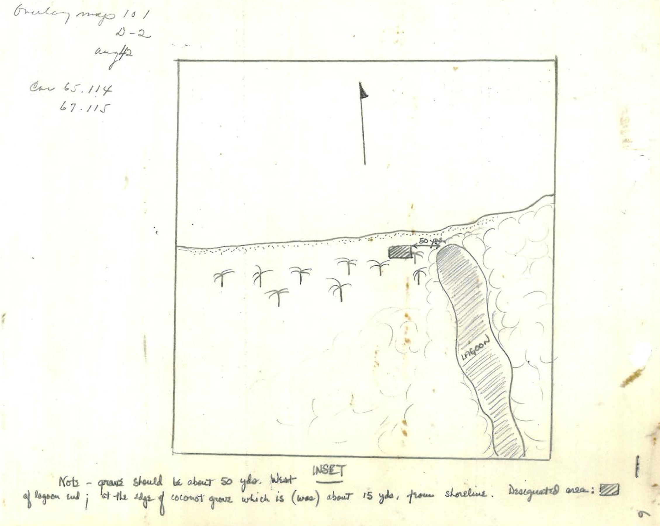 Caprano also recalled the name of the NCO leading the burial detail – Corporal Henry D. Burnham. Incredibly, Burnham also remembered the event. Both Marines drew up detailed sketches of the area which were returned to the Casualty Division.