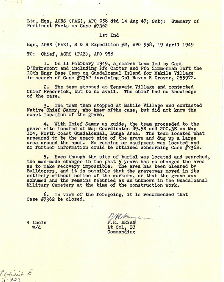 Corporal Grover’s case was closed following the second expedition, and his remains declared non-recoverable.