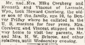 We lived in the house at 1207 E Custer, Laramie, WYO from 1965-1967 before our family moved to a different state. Since that was Howard Corsburg’s home of record, we do have that connection to him.