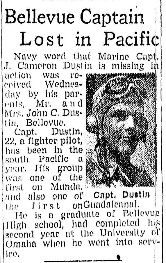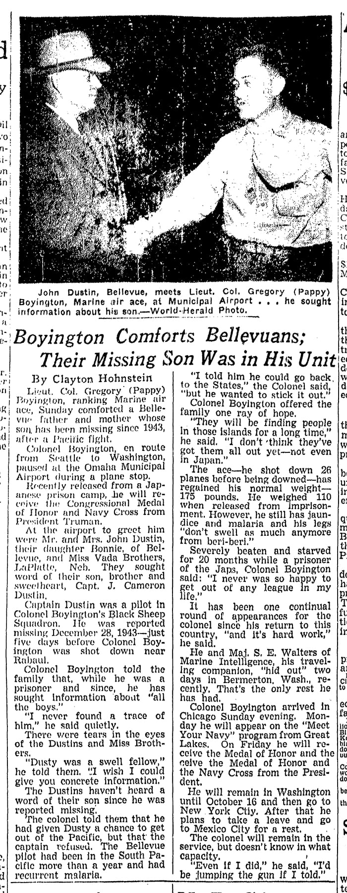 Captain J. Cameron “Dusty” Dustin was a Marine pilot with VMF-214 – the “Black Sheep” squadron.