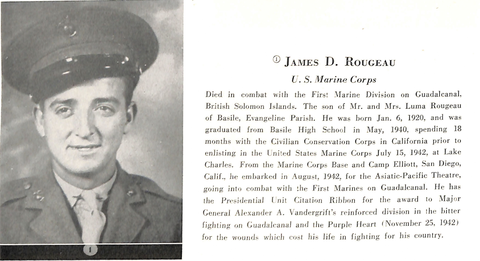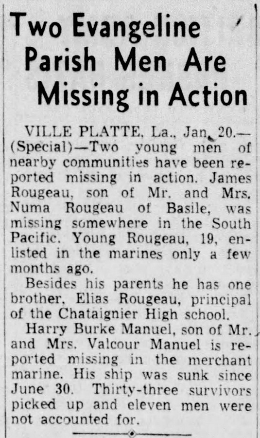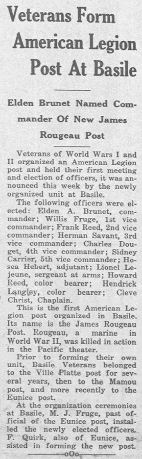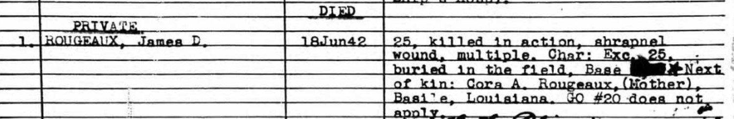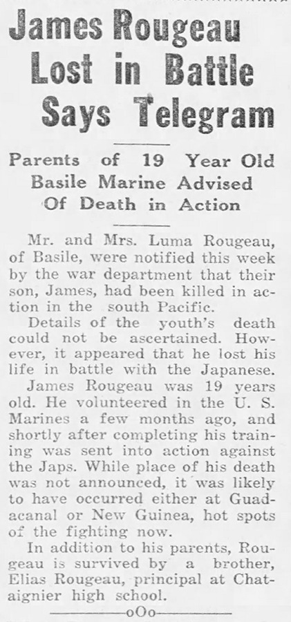 The American Legion “James Rougeau” Post 261 in Basile, Louisiana, was named in his honor.