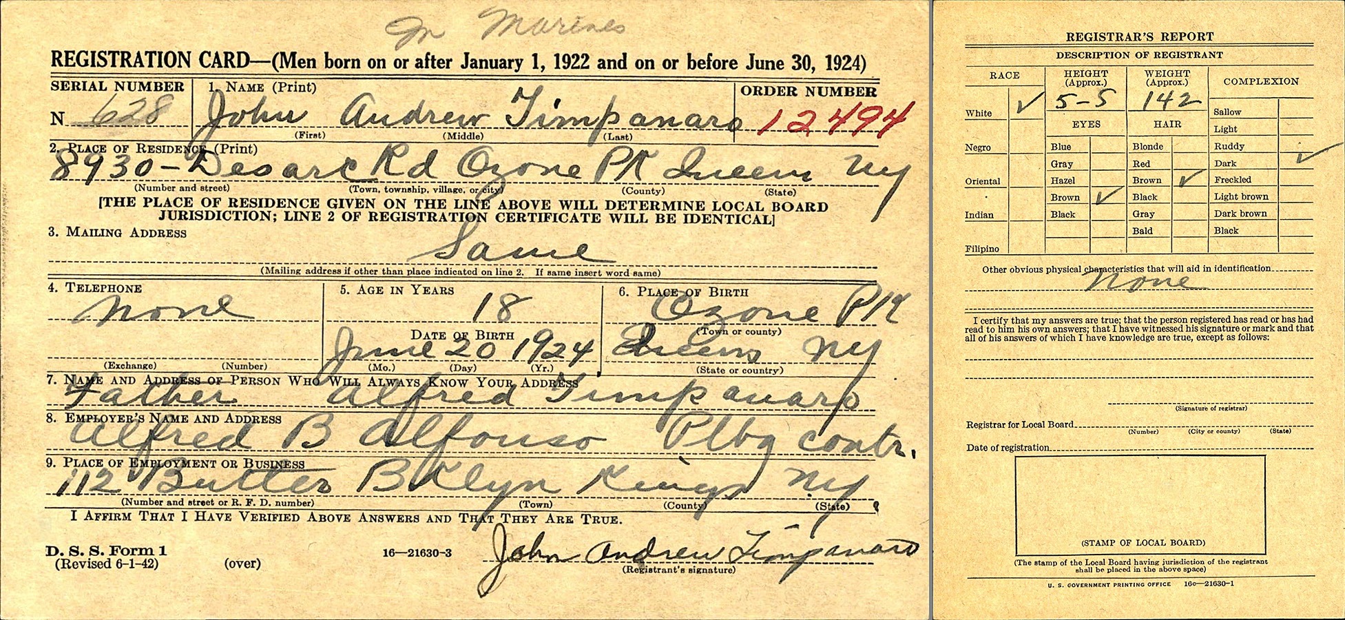 PFC John A. Timpanaro, a veteran rifleman and Purple Heart recipient, was reported missing in action on 20 February 1945. No further details of his fate are currently known.