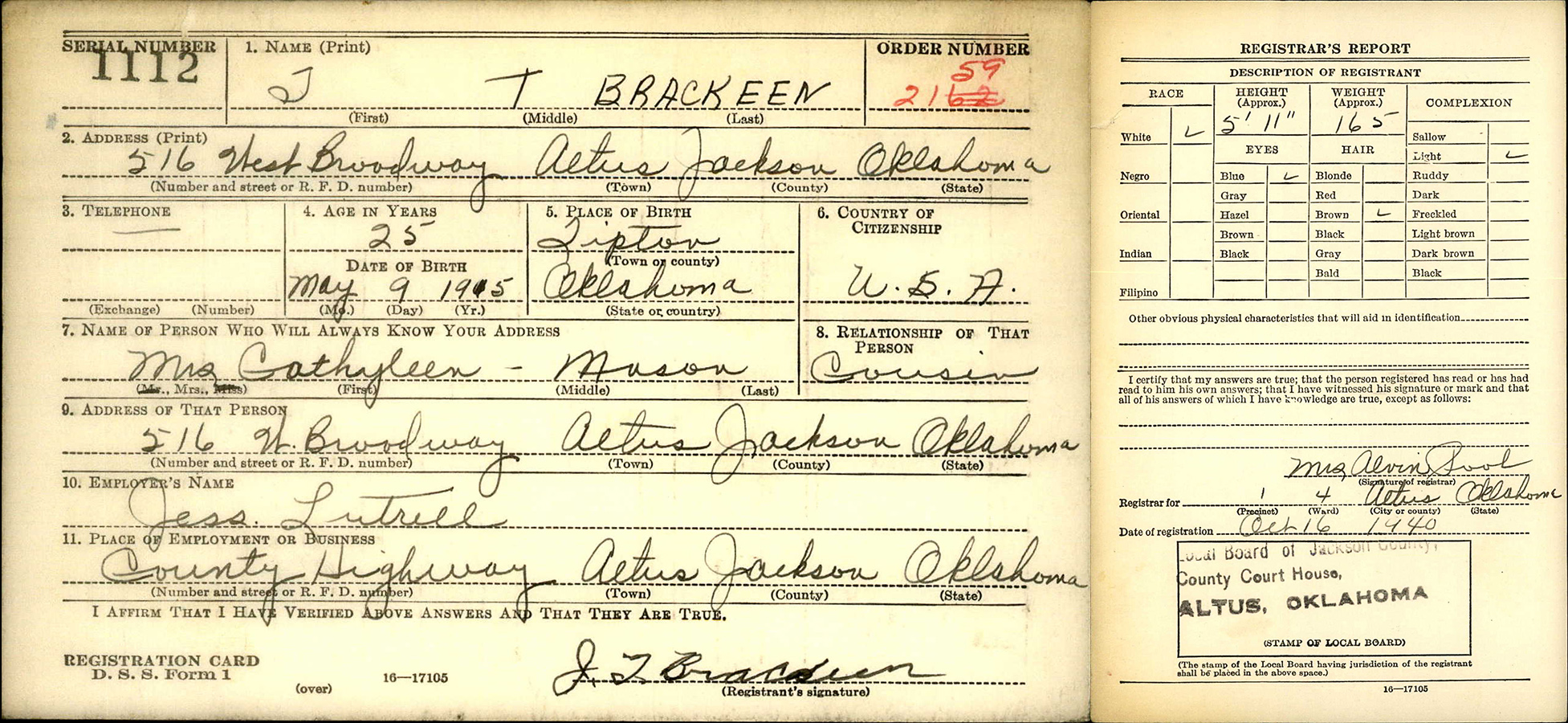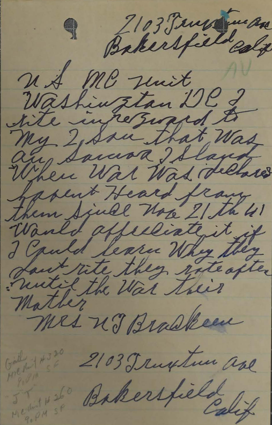 Mrs. Brackeen moved to 1427 East Polk Street, Phoenix, AZ after JT enlisted.