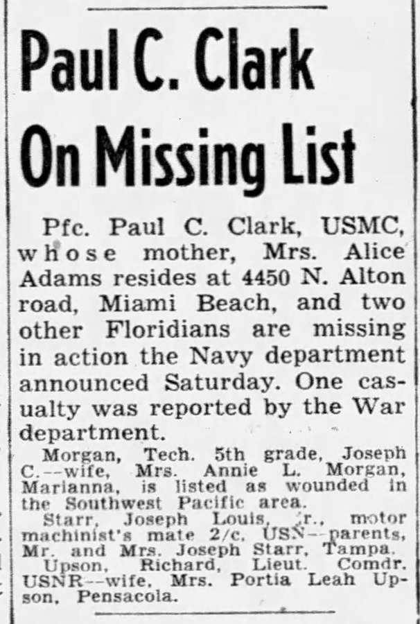 PFC Paul Clark was one of the Easy Company men who bunked in LCT-988. He was last seen aboard the landing craft before the accident, although initially reported as missing, his status was updated to “died as result of accident” in November 1944.