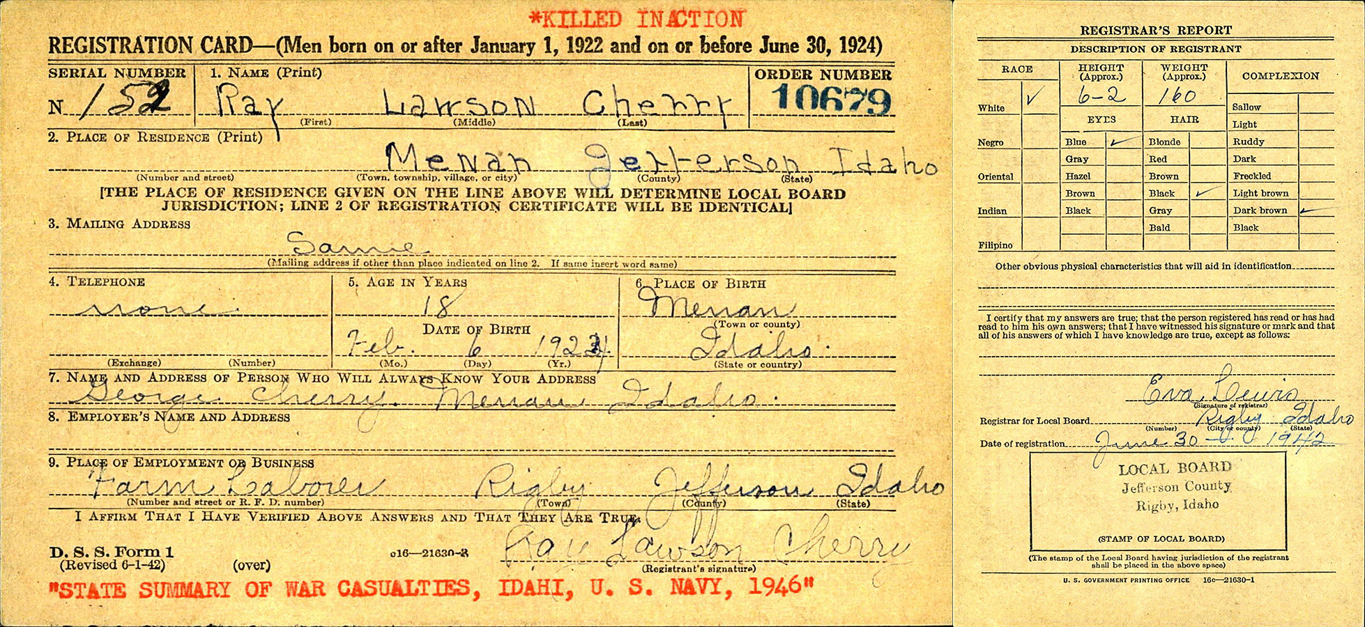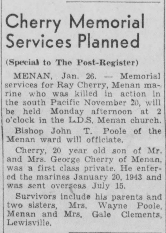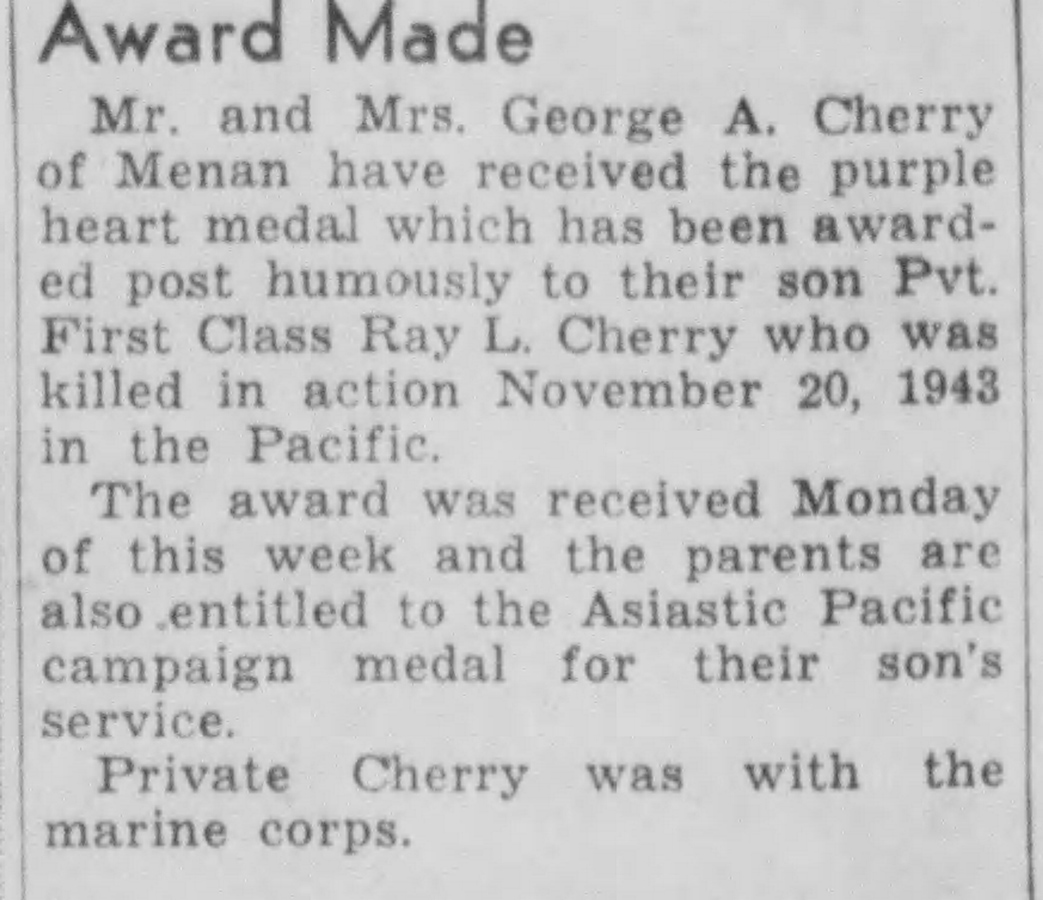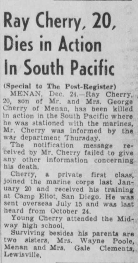 PFC Cherry was one of hundreds of Marines who lost his life on the first day of the battle. His official cause of death was “gunshot wounds received in action” – no further specifics of his death are known.