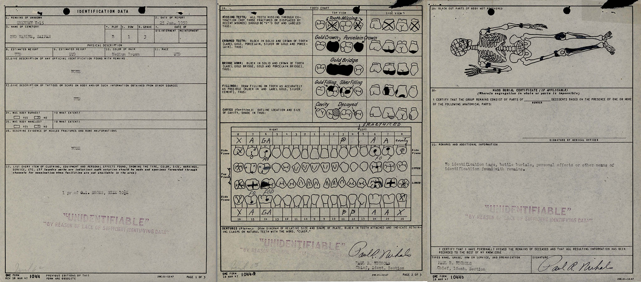 Although Murphy was certainly killed on 15 June 1944, his remains were not identified during the war or by Graves Registration troops working on Saipan in the latter part of the decade.