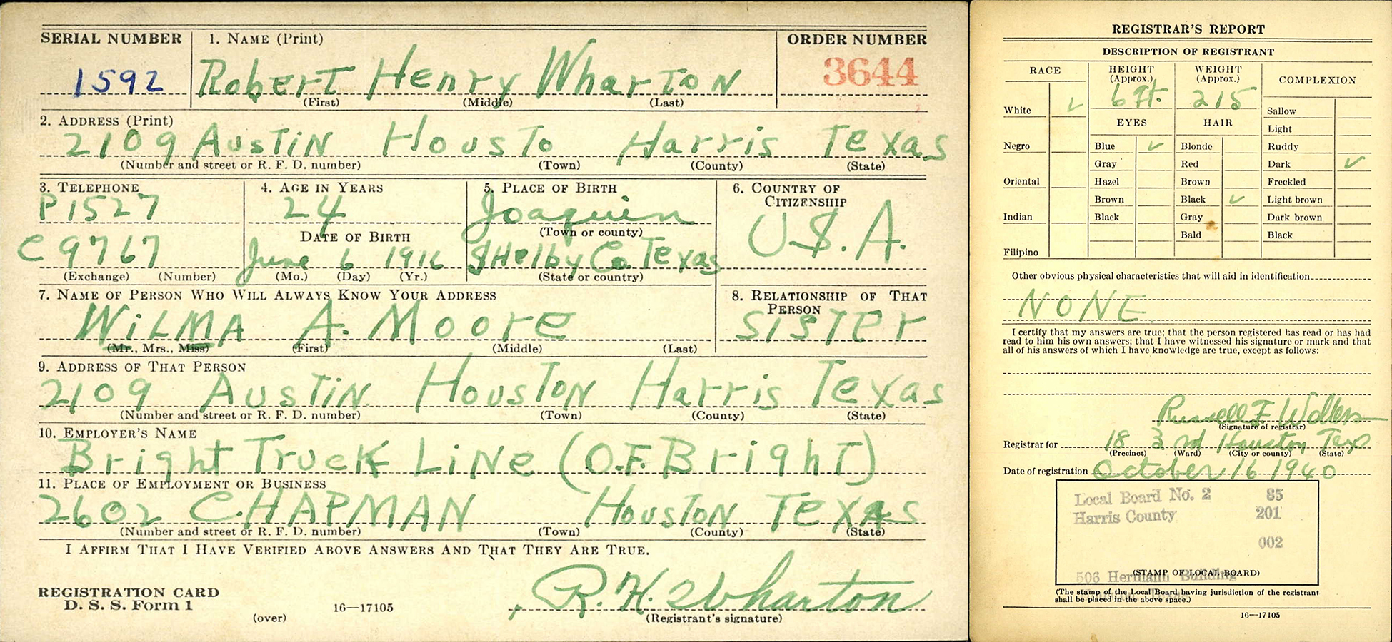 Twin brother of Richard W. Wharton