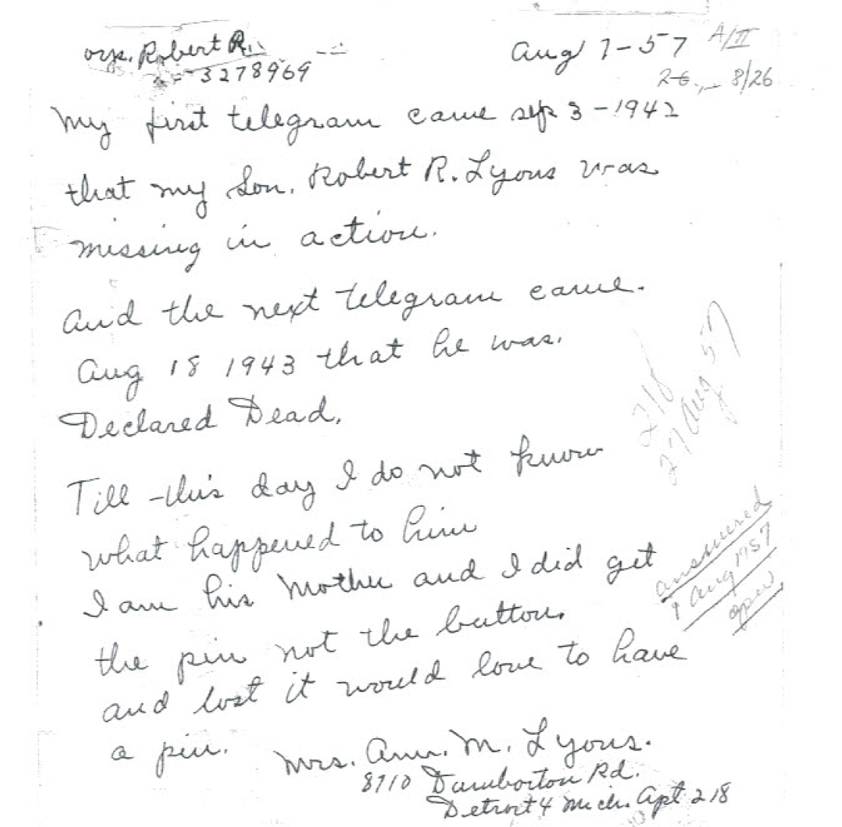 Corporal Lyons was reported as missing in action when the patrol failed to return to safety. Officially, nothing more was ever learned of Goettge’s men, and all were eventually declared dead as of 14 August 1943.