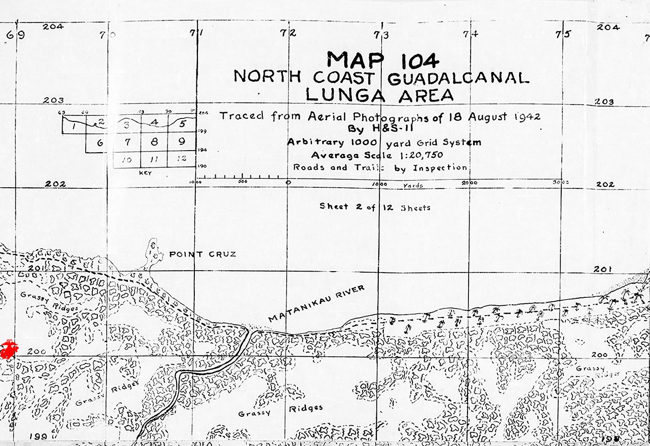 On 25 November 1942, the First Battalion, 8th Marines held defensive positions along a ridge west of Guadalcanal’s Matanikau River. Frontal assaults over the previous days had failed to crack the powerful Japanese line, and Marine and Army units were limited to sending out combat patrols to knock out the more troublesome enemy emplacements. Machine gun positions were especially hard to eliminate, and the battalion suffered 27 casualties during the day’s operations.