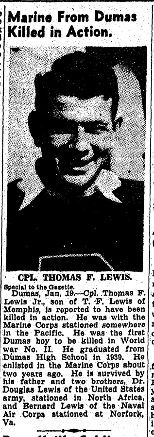 Corporal Thomas F. “Tommy” Lewis, Jr., served with Dog Company, First Battalion, 8th Marines.