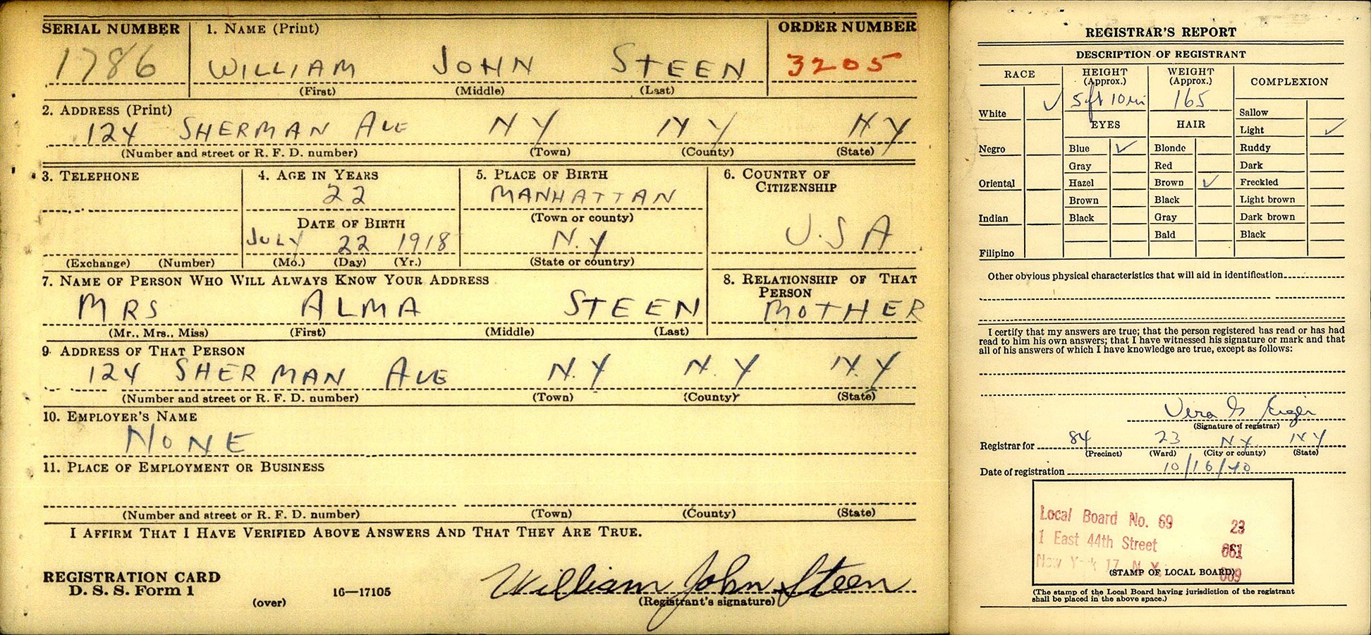 Steen married Mary Cecilia Coughlin on 9 May 1942, shortly before going overseas.